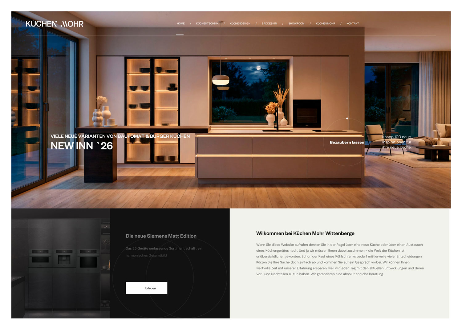 Für Küchen Mohr haben wir die Marke ganzheitlich neu aufgestellt, strategisch, visuell und über alle Kanäle. Ziel war ein Auftritt, der Beratungskompetenz, Designanspruch und handwerkliche Qualität klar zeigt und digital erlebbar macht. Kern des Projekts ist eine rund 100 Seiten starke Website mit sauberer Informationsarchitektur, UX orientiertem Aufbau und suchmaschinenoptimierten Inhalten. Sie funktioniert als digitale Markenplattform, in der Struktur, Content und Nutzerwege auf Orientierung, Inspiration und Conversion ausgerichtet sind. Visuell prägend sind die Hybrid Visuals für Bauformat und Burger Küchen. Entstanden ist ein konsistenter Brand Look mit hoher Wiedererkennbarkeit, der sich vom ersten Eindruck bis zur Anfrage überzeugend durchzieht.