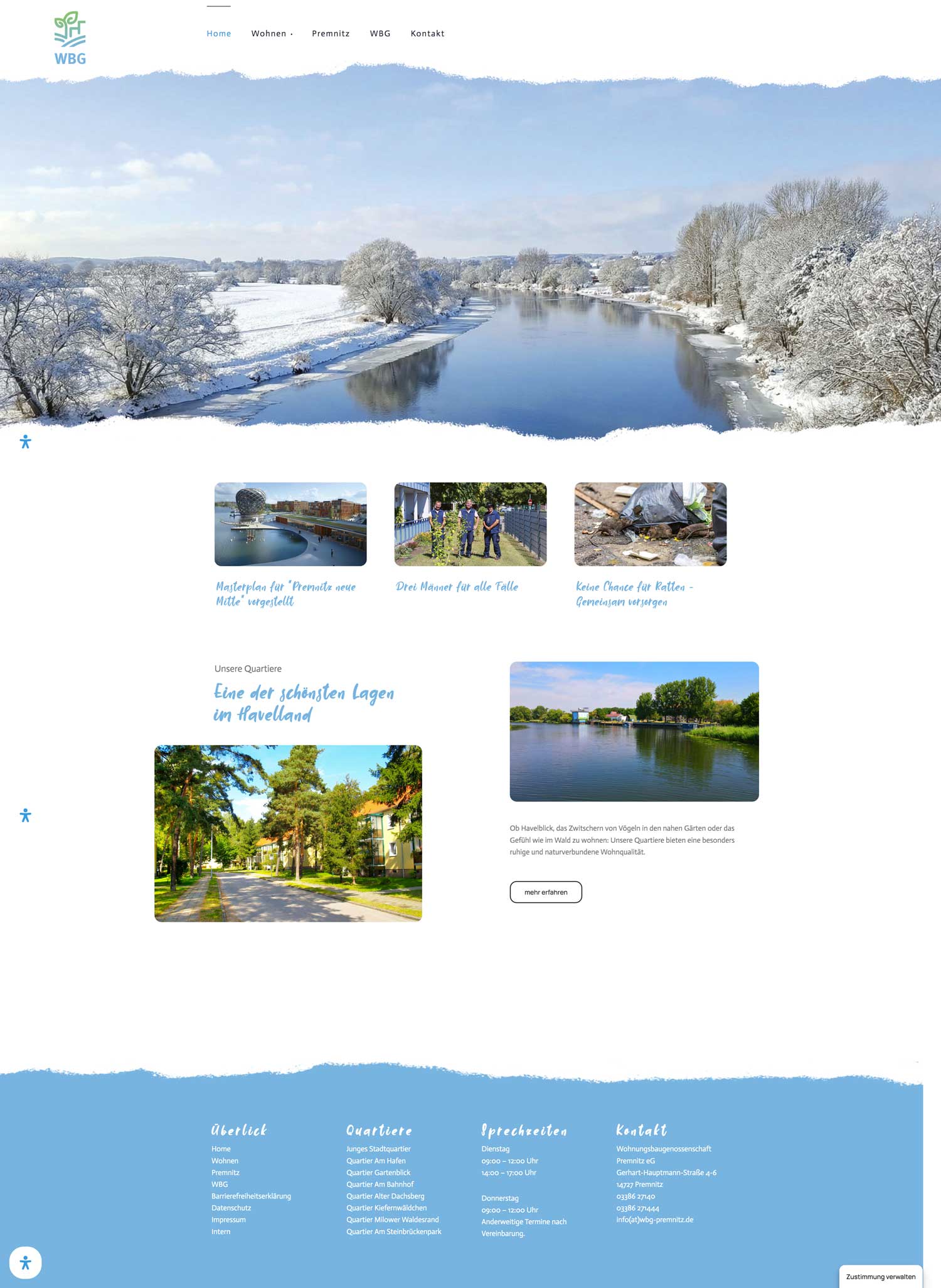Seit rund 20 Jahren begleiten wir die WBG Premnitz als Strategie und Kreativpartner, von Markenarbeit und CI Rollout bis zur laufenden Umsetzung im Tagesgeschäft. Ziel ist, Wohnqualität als Markenerlebnis sichtbar zu machen, ruhig, vertrauensvoll und klar in Premnitz verortet. Ein zentraler Touchpoint ist die barrierefreie Website mit reduziertem Interface, klarer Informationsstruktur, sauberen Nutzerwegen und einer Bildführung, die Orientierung schafft. Bereits im Hero Bereich setzt die Startseite auf großflächige Landschaftsmotive und eine entschleunigte Tonalität. Ergänzend entwickeln wir Formate, die Identifikation fördern und Bindung stärken. Dazu gehört das Stadtmagazin 360Grad als hochwertiges Printprodukt mit redaktioneller Tiefe, dessen Inhalte je nach Thema als Digitalmagazin auf der Website weiterlaufen. Ein besonderes Highlight war die überregionale Kampagne zur Vermietung von 17 Einfamilienhäusern im jungen Quartier, mit klarer Zielgruppenansprache, starken Visual Stories und werbewirksamen Assets für digitale Ausspielung.
